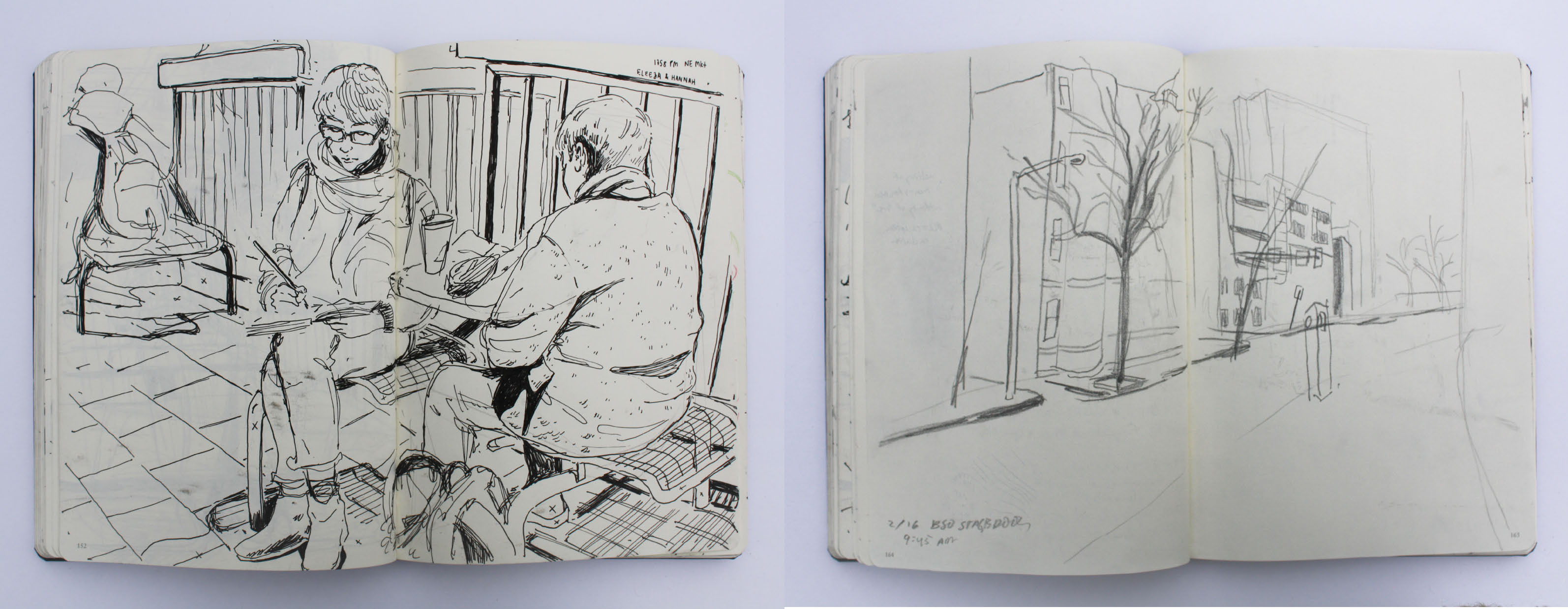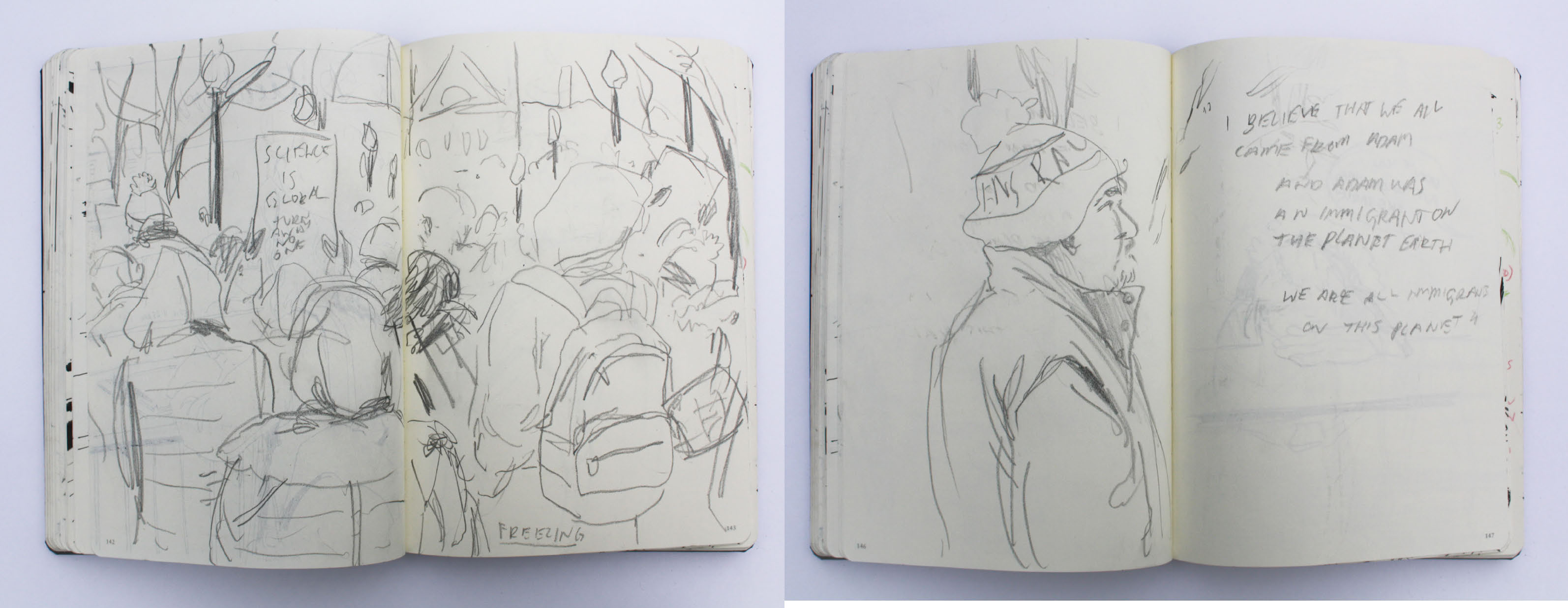 A book of 32 visual journalism drawings from January to April 2017.